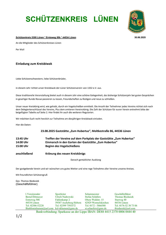 Kreisbiwak 2025 Austragender Verein: SV Lünen 1332